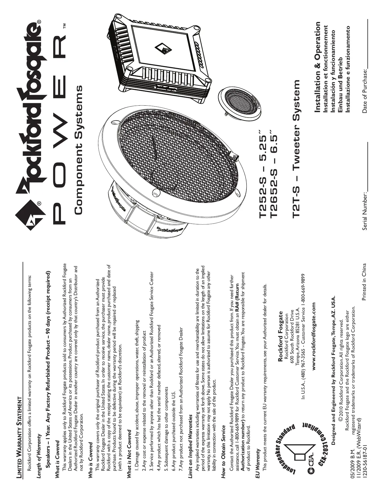 | Rec. Amp Power-Watts (RMS) | 22.5W ~ 75W | 30W ~ 100W | 22.5W ~ 75W |