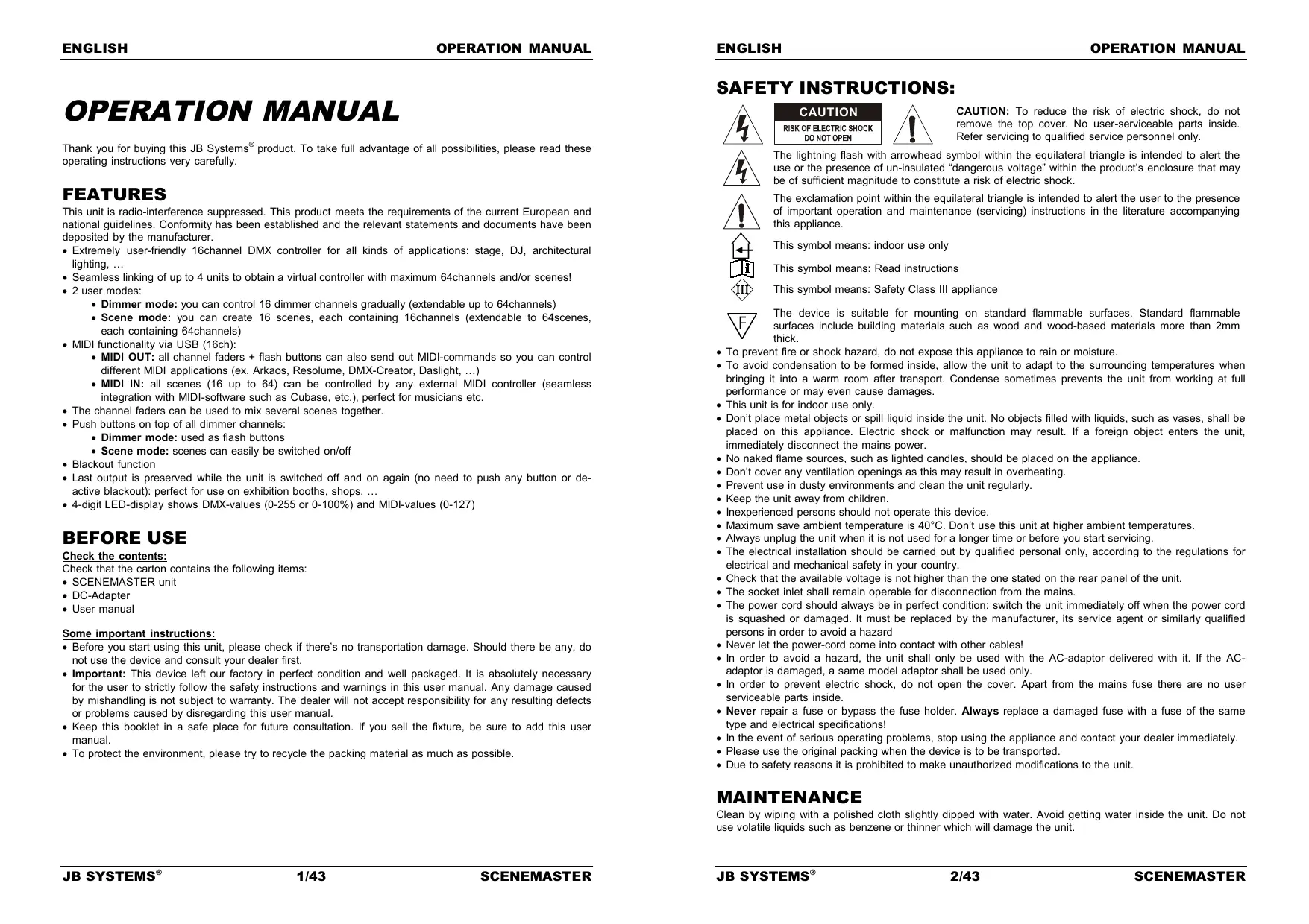 Thank you for buying this JB Systems® product. To take full advantage of all possibilities, please read these operating instructions very carefully.