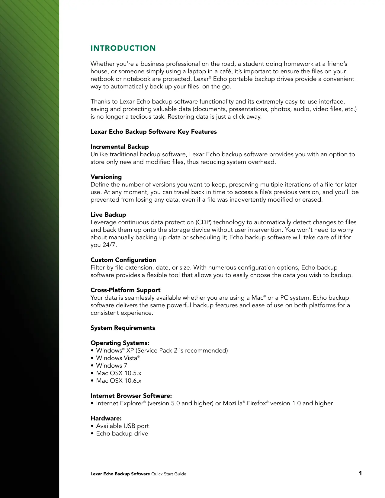Find the device manual for free ECHO BACKUP LEXAR in PDF.