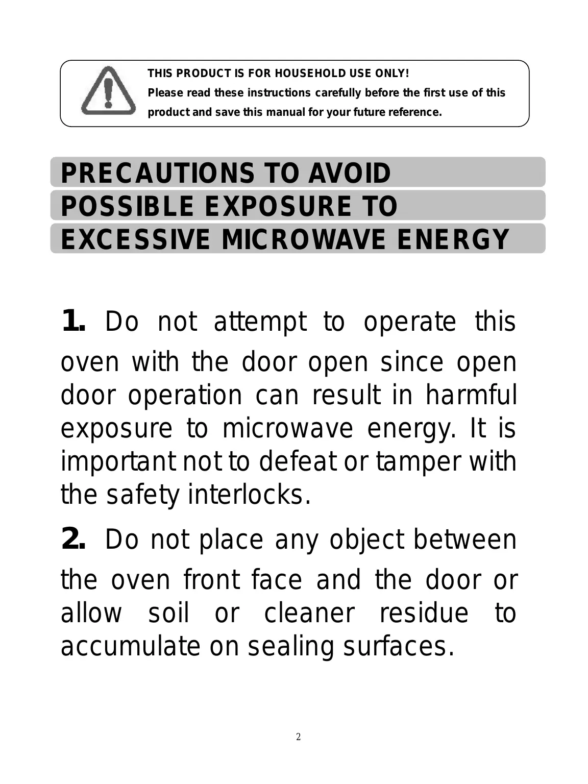 oven with the door open since open door operation can result in harmful exposure to microwave energy. It is important not to defeat or tamper with the safety interlocks.