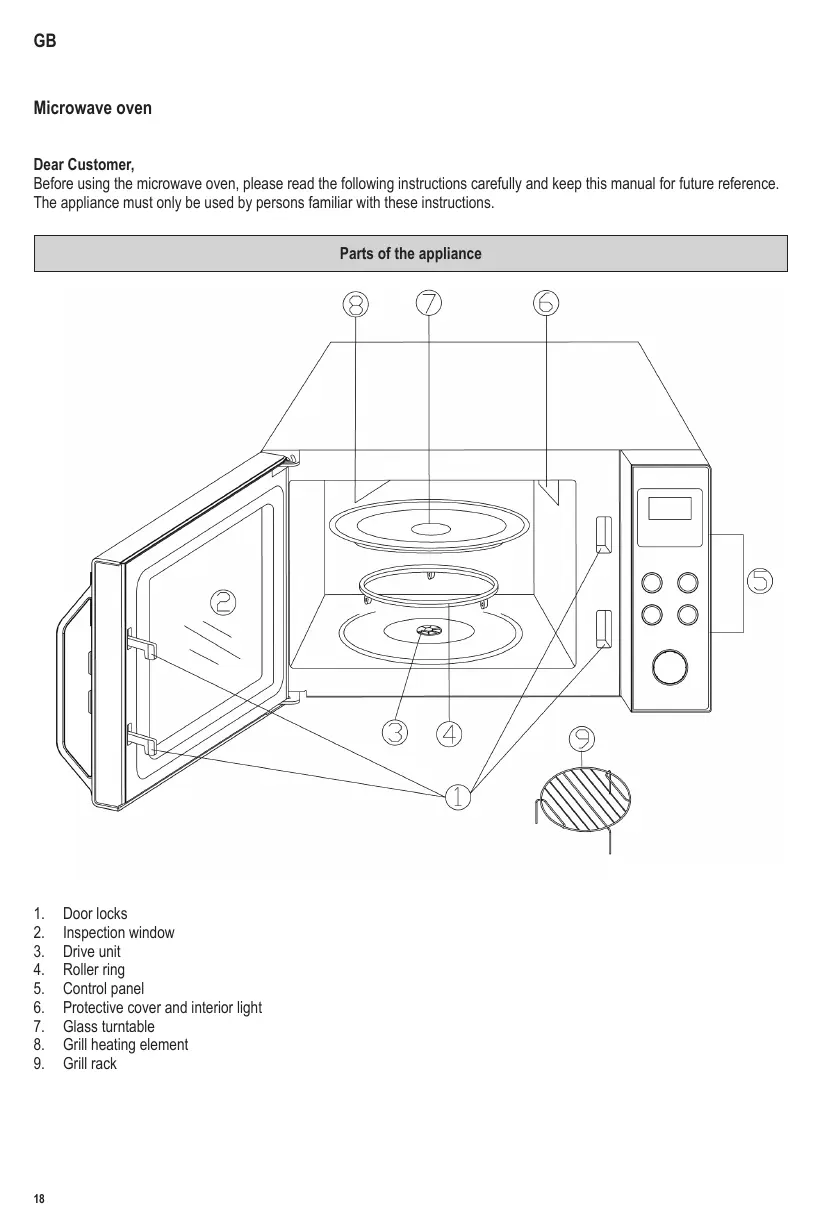 Dear Customer, Before using the microwave oven, please read the following instructions carefully and keep this manual for future reference. The appliance must only be used by persons familiar with these instructions. Parts of the appliance