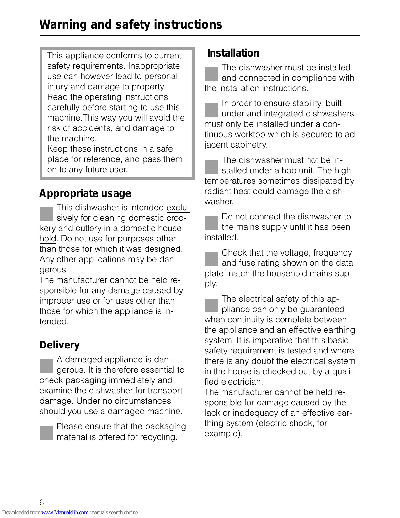 It is essential to read the operating and installation instructions before installing or using the machine, to avoid the risk of accident or damage to the machine. Downloaded from www.Manualslib.com manuals search engine