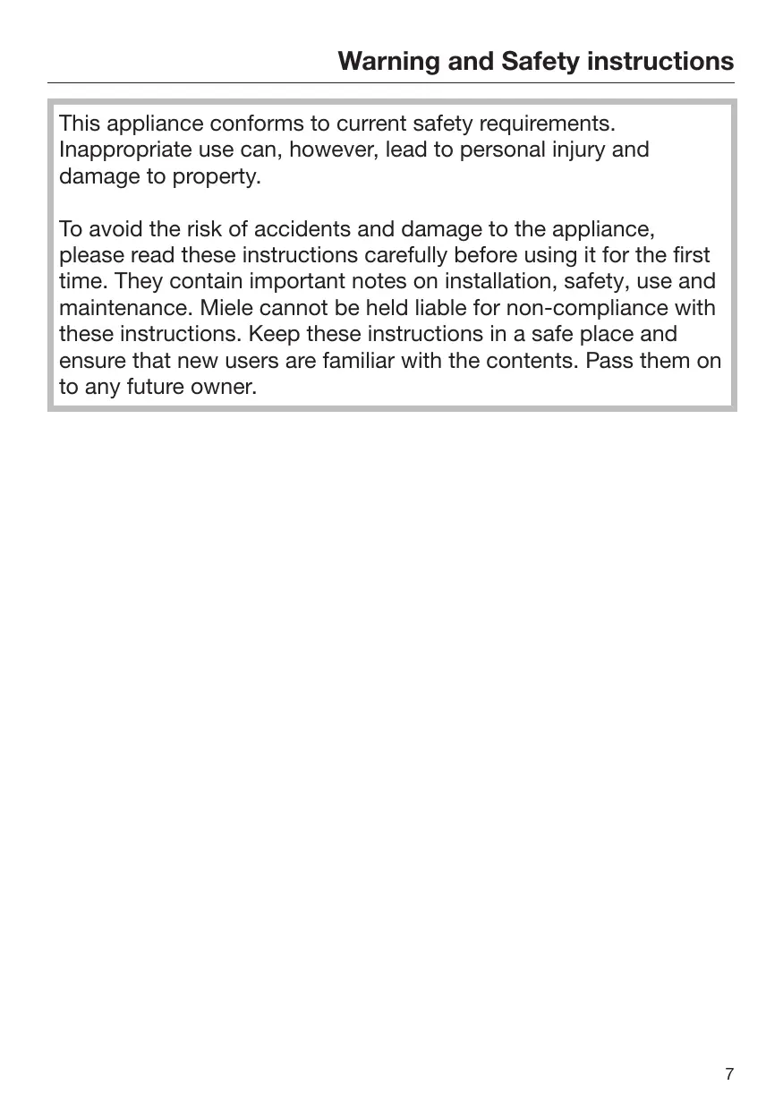 Please quote the model and serial number of your appliance when contacting Miele.