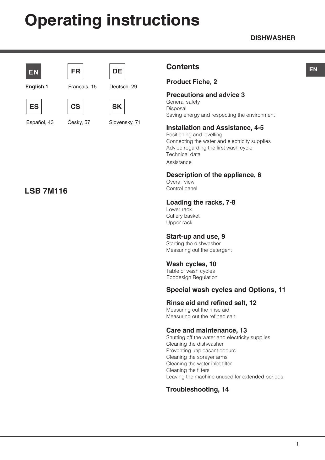 Download the instructions for your Dishwasher in PDF format for free! Find your manual LDF12314B - HOTPOINT and take your electronic device back in hand. On this page are published all the documents necessary for the use of your device. LDF12314B by HOTPOINT.