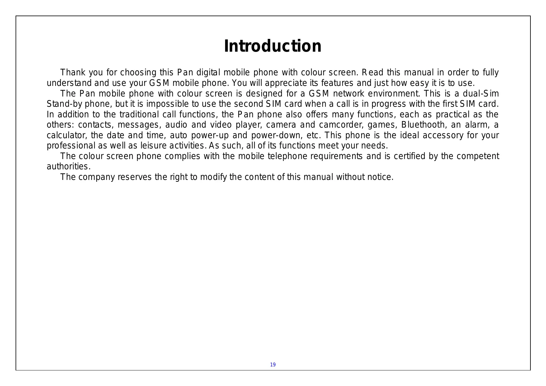 PHOENIX TESTLAB GMBH Köningswinkel 10 32825 Blomberg Le téléphone à écran couleur répond aux exigences de la téléphonie mobile et est certifié par les autorités compétentes. La société se réserve le droit de modifier le contenu de ce manuel sans préavis.