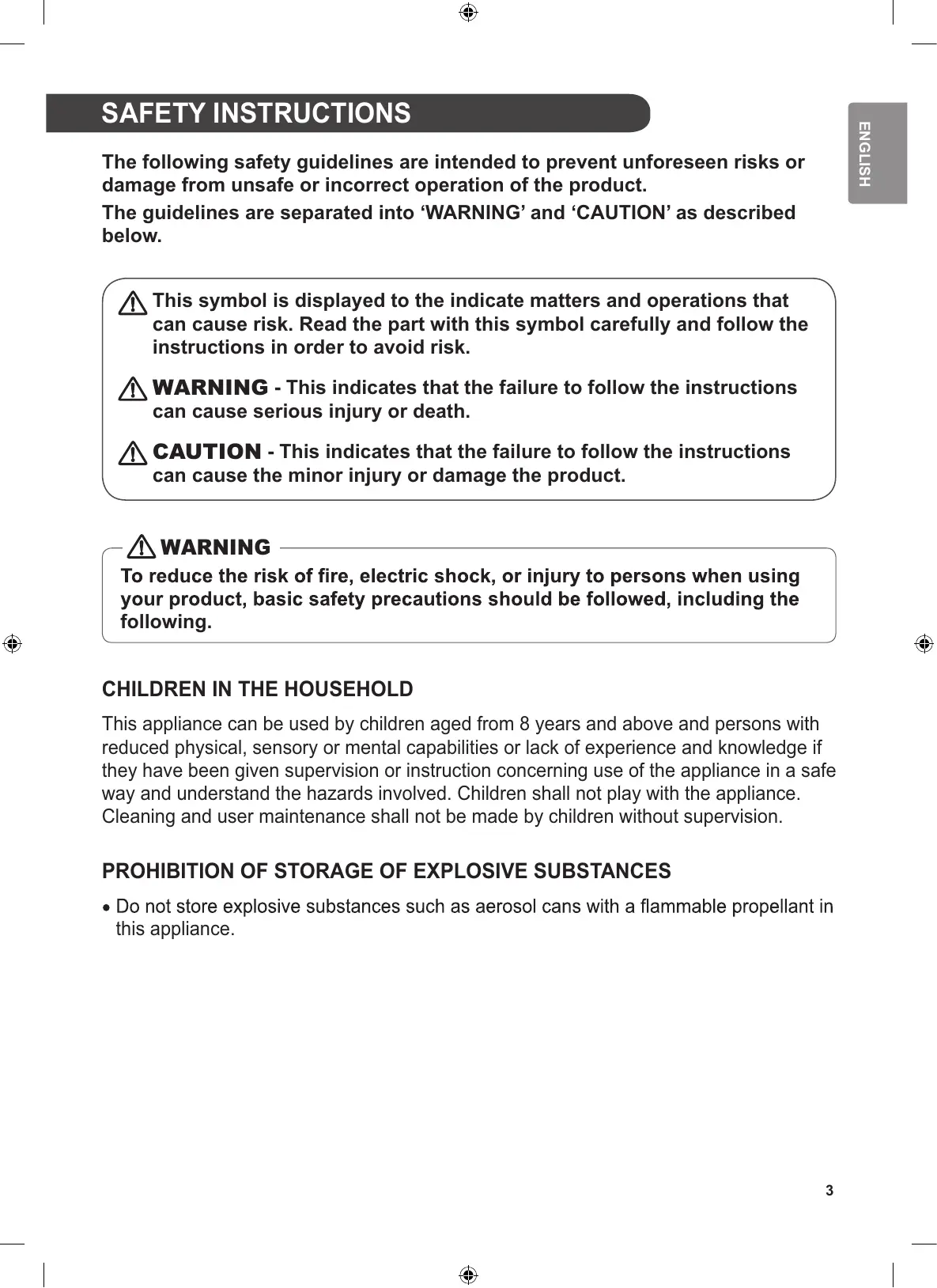 PROHIBITION OF STORAGE OF EXPLOSIVE SUBSTANCES this appliance.