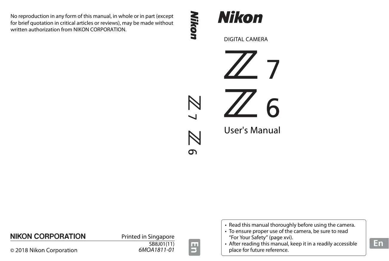 About This Manual This manual is for use with both the Z 7 and Z 6. The illustrations show the Z 7.