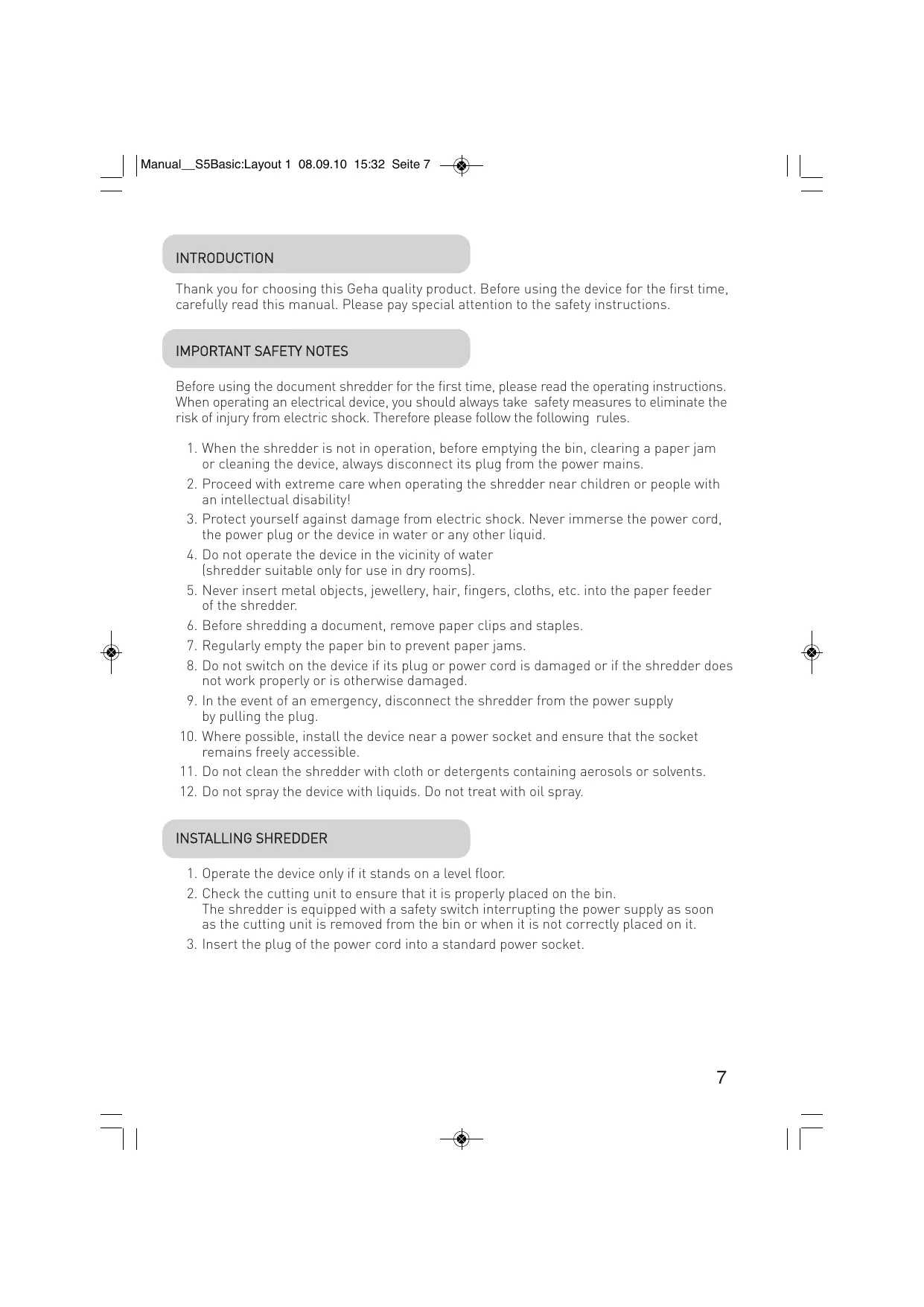 S5 - Paper shredder GEHA - Free user manual and instructions