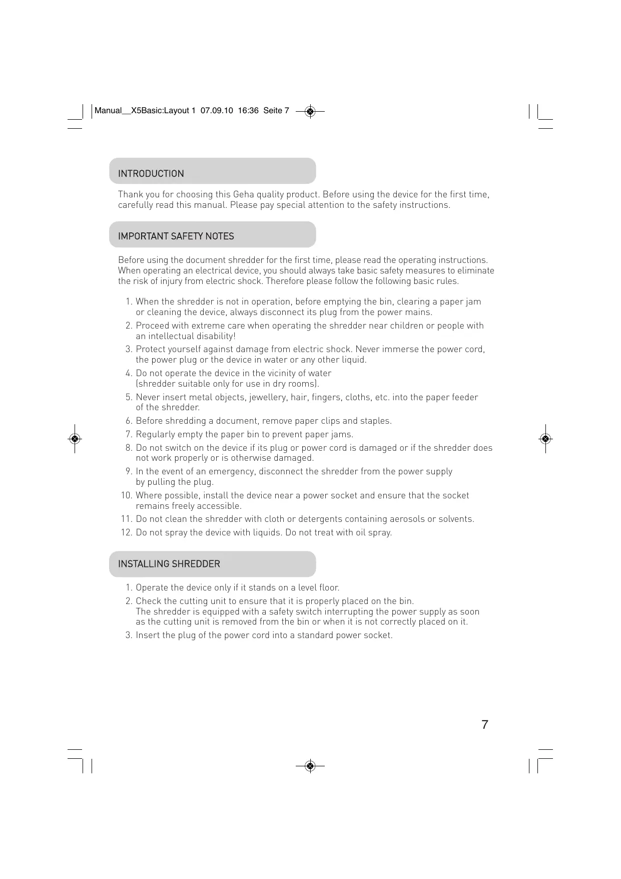 Download the instructions for your Shredder in PDF format for free! Find your manual X5 - GEHA and take your electronic device back in hand. On this page are published all the documents necessary for the use of your device. X5 by GEHA.