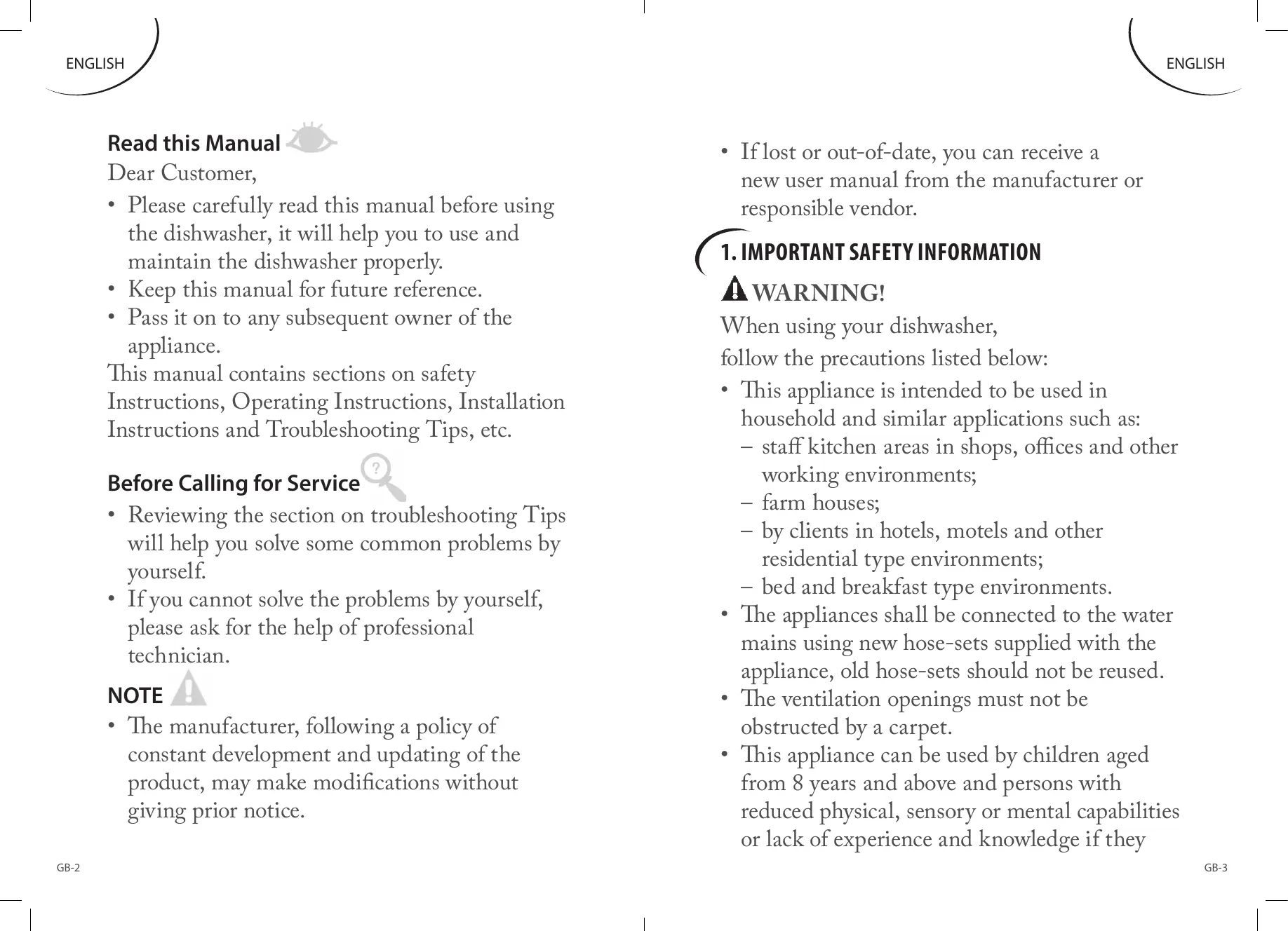 GB-1 ENGLISH Read this Manual Dear Customer,
