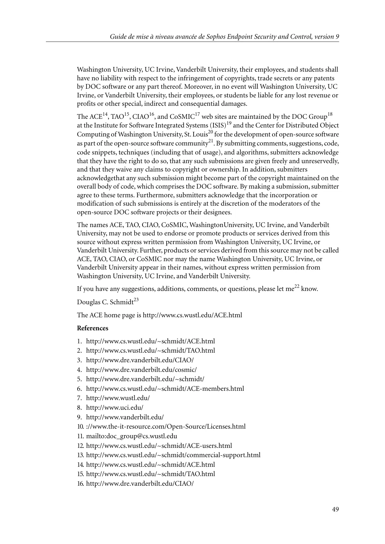 ACE1, TAO2, CIAO3, and CoSMIC4 (henceforth referred to as “DOC software”) are copyrighted by Douglas C. Schmidt5 and his research group6 at Washington University7, University of échec de mise à niveau des bases de données NAC 38 Erreurs de mise à niveau du NAC Manager 38 rétablissement de la base de données Enterprise Console 9