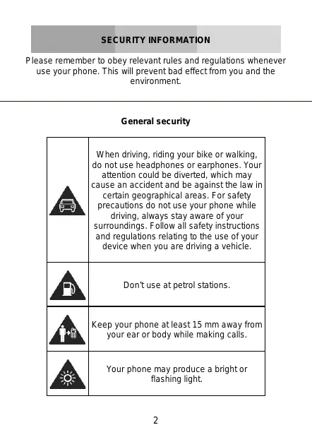 EN SECURITY INFORMATION Please remember to obey relevant rules and regulations whenever use your phone. This will prevent bad effect from you and the environment.