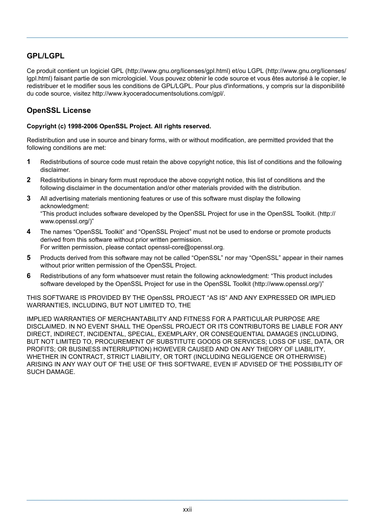 All advertising materials mentioning features or use of this software must display the following acknowledgment: “This product includes software developed by the OpenSSL Project for use in the OpenSSL Toolkit. (http:// www.openssl.org/)”