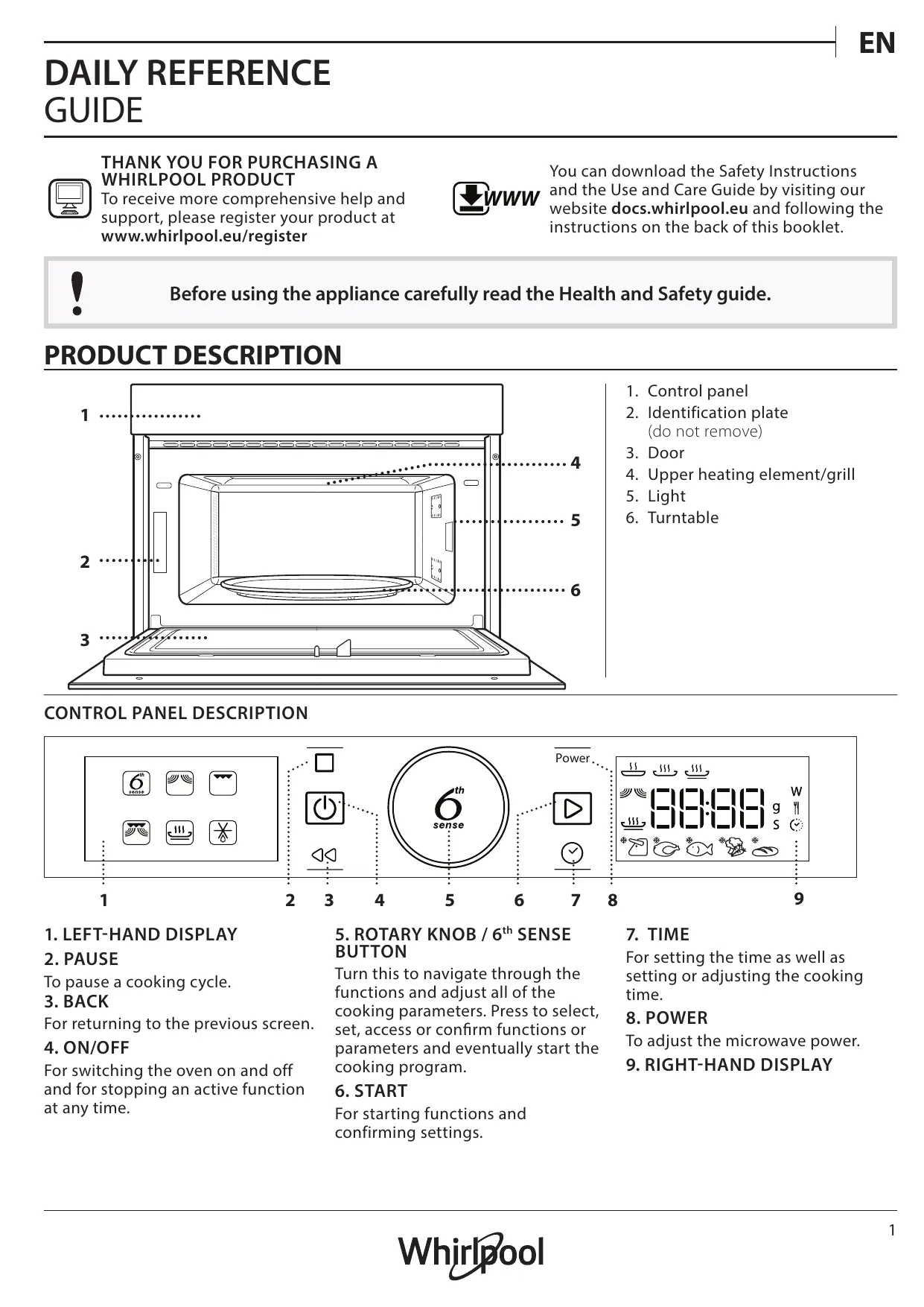 AMW 770/NB - Four à micro-ondes WHIRLPOOL - Free user manual and instructions