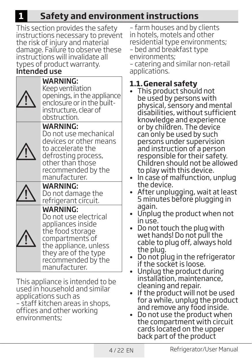This appliance is intended to be used in household and similar applications such as – staff kitchen areas in shops, offices and other working environments; – farm houses and by clients in hotels, motels and other residential type environments; – bed and breakfast type environments; – catering and similar non-retail applications. 1.1. General safety This product should not be used by persons with physical, sensory and mental disabilities, without sufficient knowledge and experience or by children. The device can only be used by such persons under supervision and instruction of a person responsible for their safety. Children should not be allowed to play with this device.