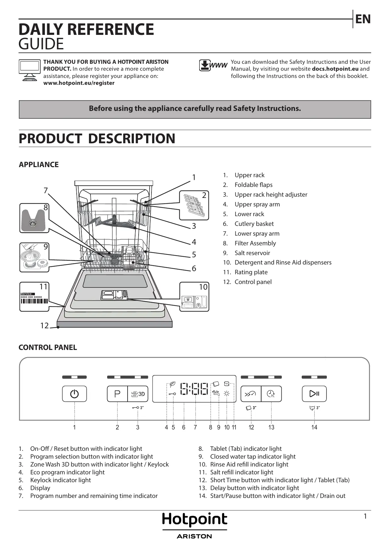 EN DAILY REFERENCE GUIDE THANK YOU FOR BUYING A HOTPOINT ARISTON PRODUCT. In order to receive a more complete assistance, please register your appliance on: www.hotpoint.eu/register
