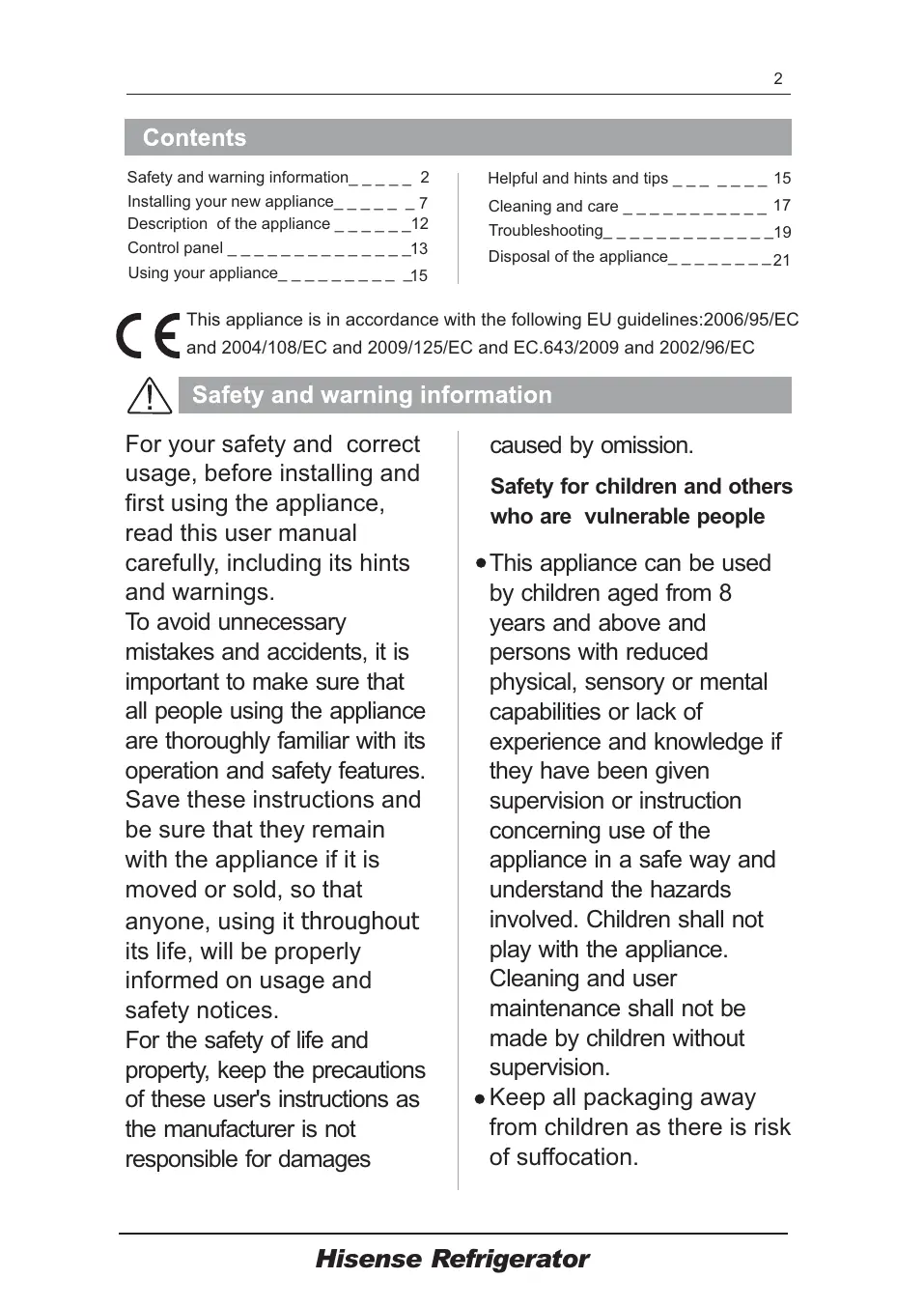 For your safety and correct usage, before installing and first using the appliance, read this user manual carefully, including its hints and warnings.