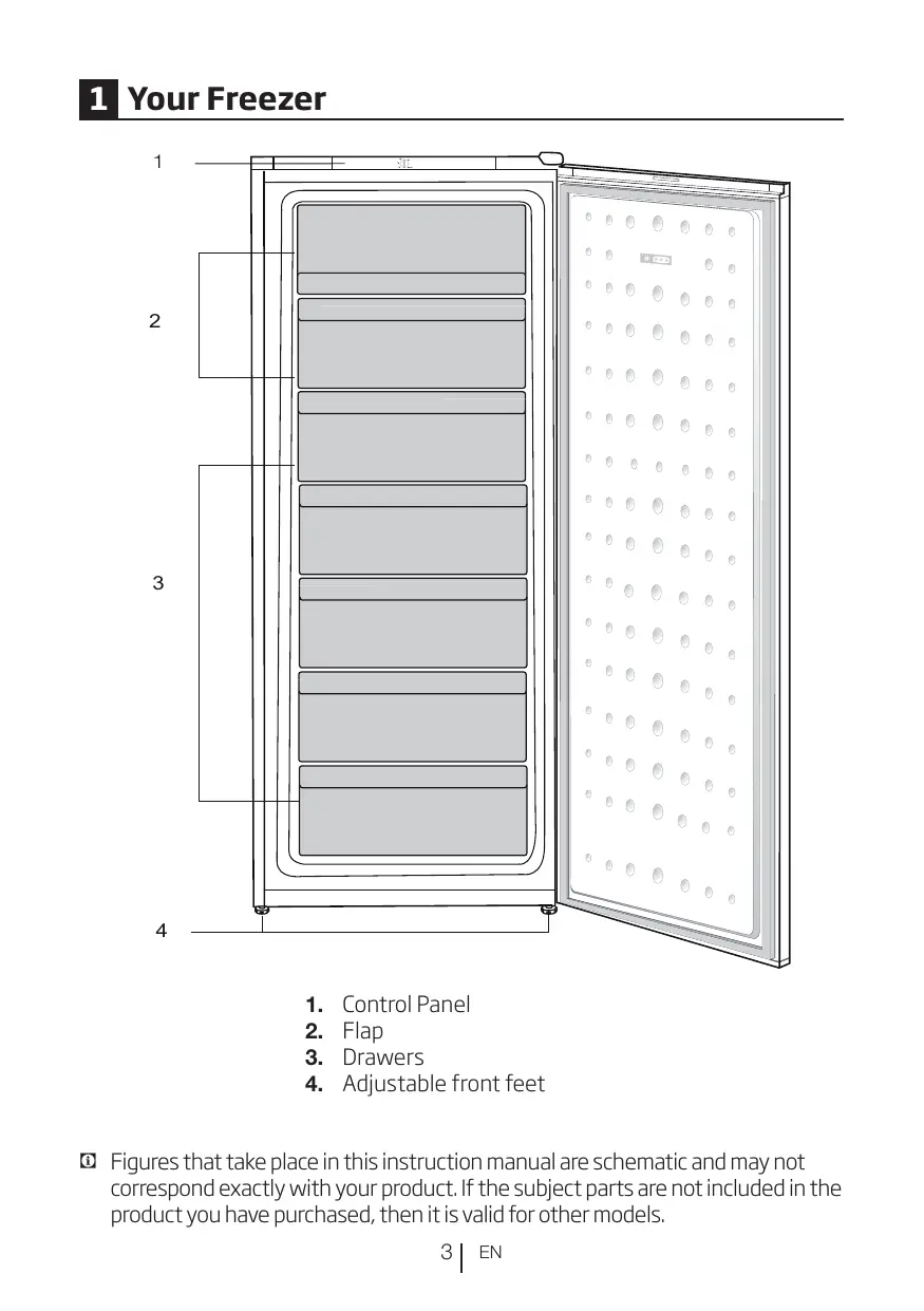 This product has been manufactured with high quality parts and materials which can be reused and are suitable for recycling. Therefore, do not dispose the product with normal domestic waste at the end of its service life. Take it to a collection point for the recycling of electrical and electronic equipment. Please consult your local authorities to learn the nearest collection point. Help protect the environment and natural resources by recycling used products. For children’s safety, cut the power cable and break the locking mechanism of the door, if any, so that it will be non-functional before disposing of the product.