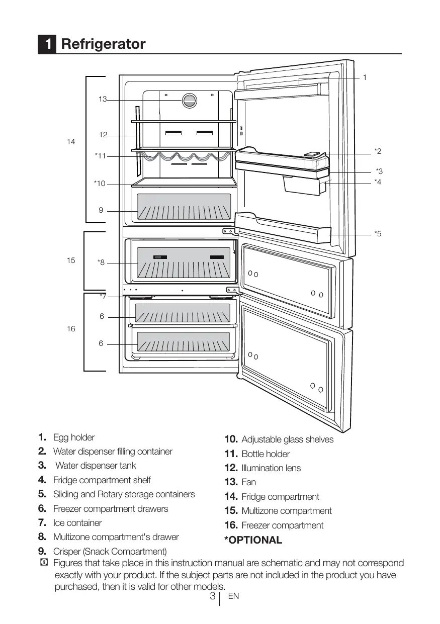Clayette du compartiment réfrigérateur Récipients de conservation coulissants et rotatifs Tiroirs du compartiment congélateur Appareil à glaçons Tiroir du compartiment Multizone