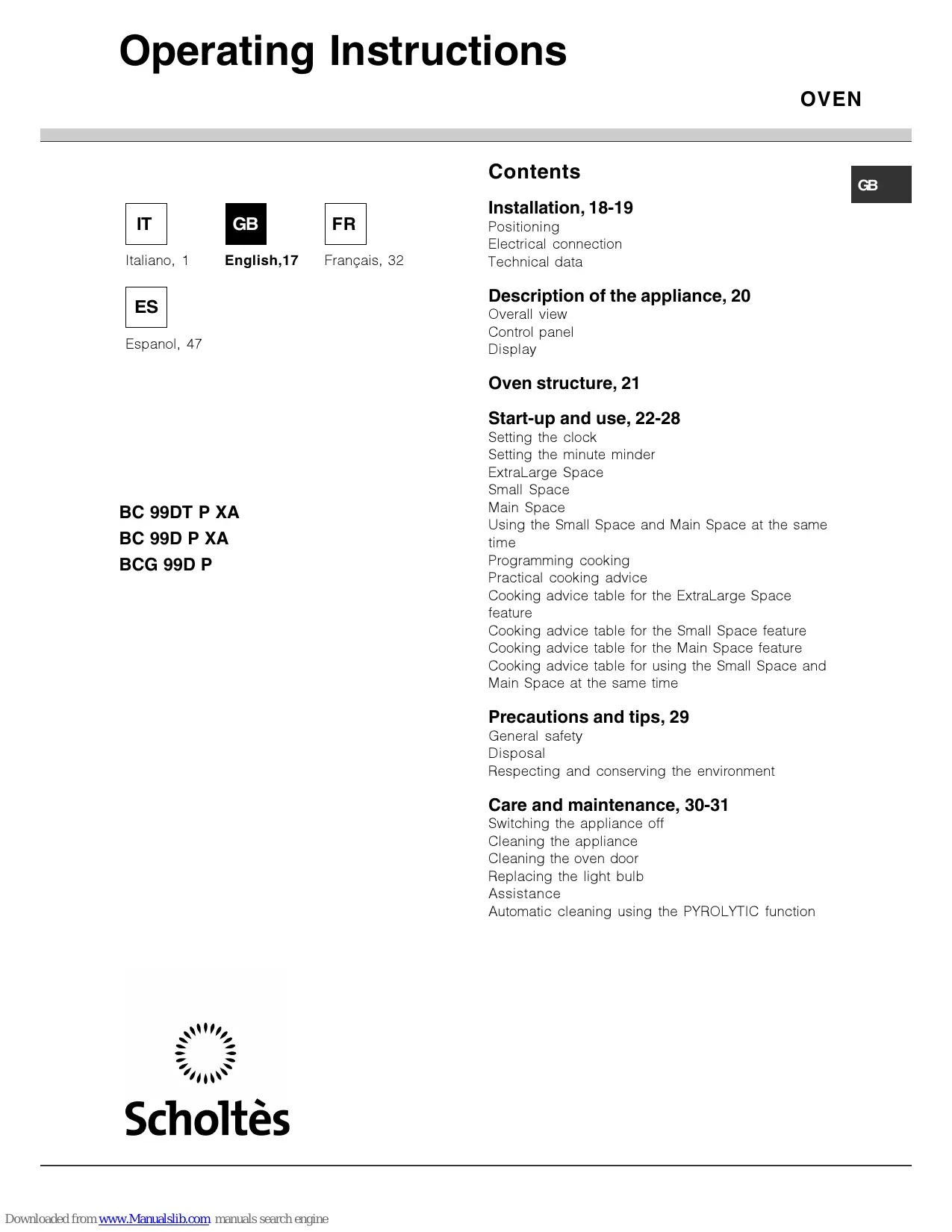 Find the device manual for free BC99DP XA S SCHOLTES in PDF.
