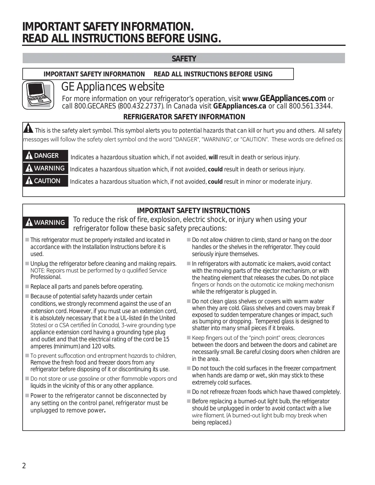 SAFETY IMPORTANT SAFETY INFORMATION GE Appliances website