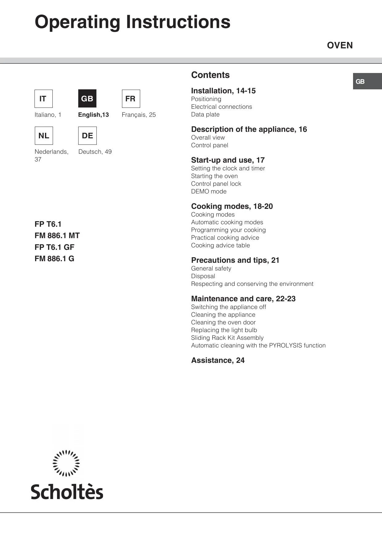 Download the instructions for your in PDF format for free! Find your manual FM886.1G MT S - SCHOLTES and take your electronic device back in hand. On this page are published all the documents necessary for the use of your device. FM886.1G MT S by SCHOLTES.