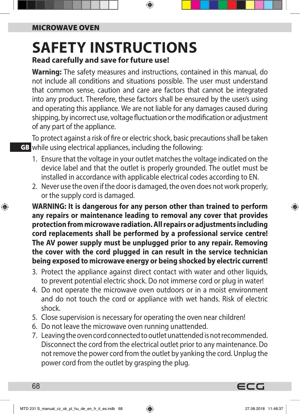 MTD 231 S - Microwave Oven ECG - Free user manual and instructions