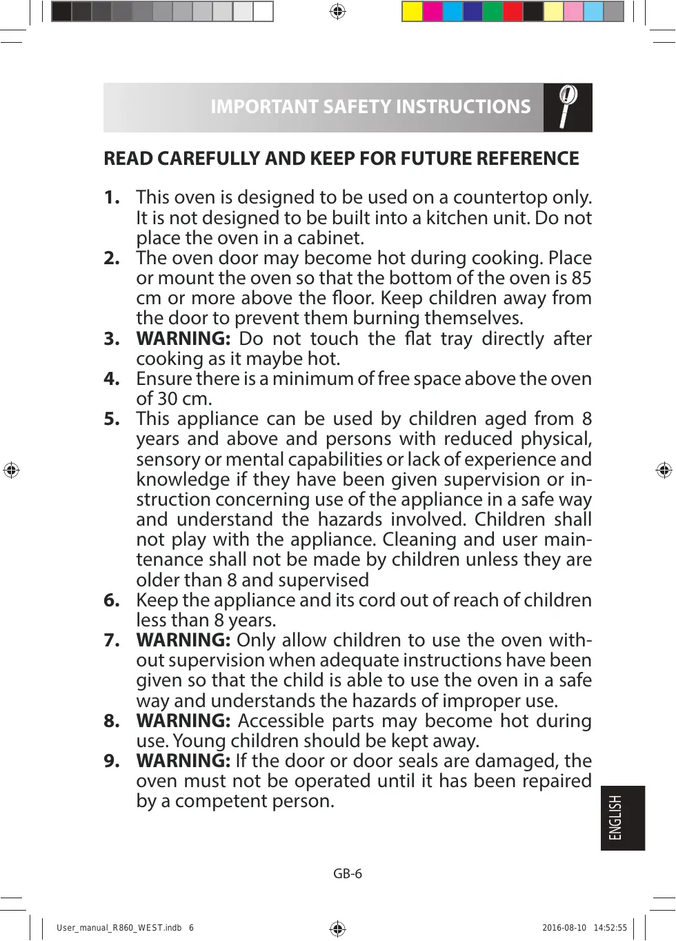 ENGLISH READ CAREFULLY AND KEEP FOR FUTURE REFERENCE GB-6