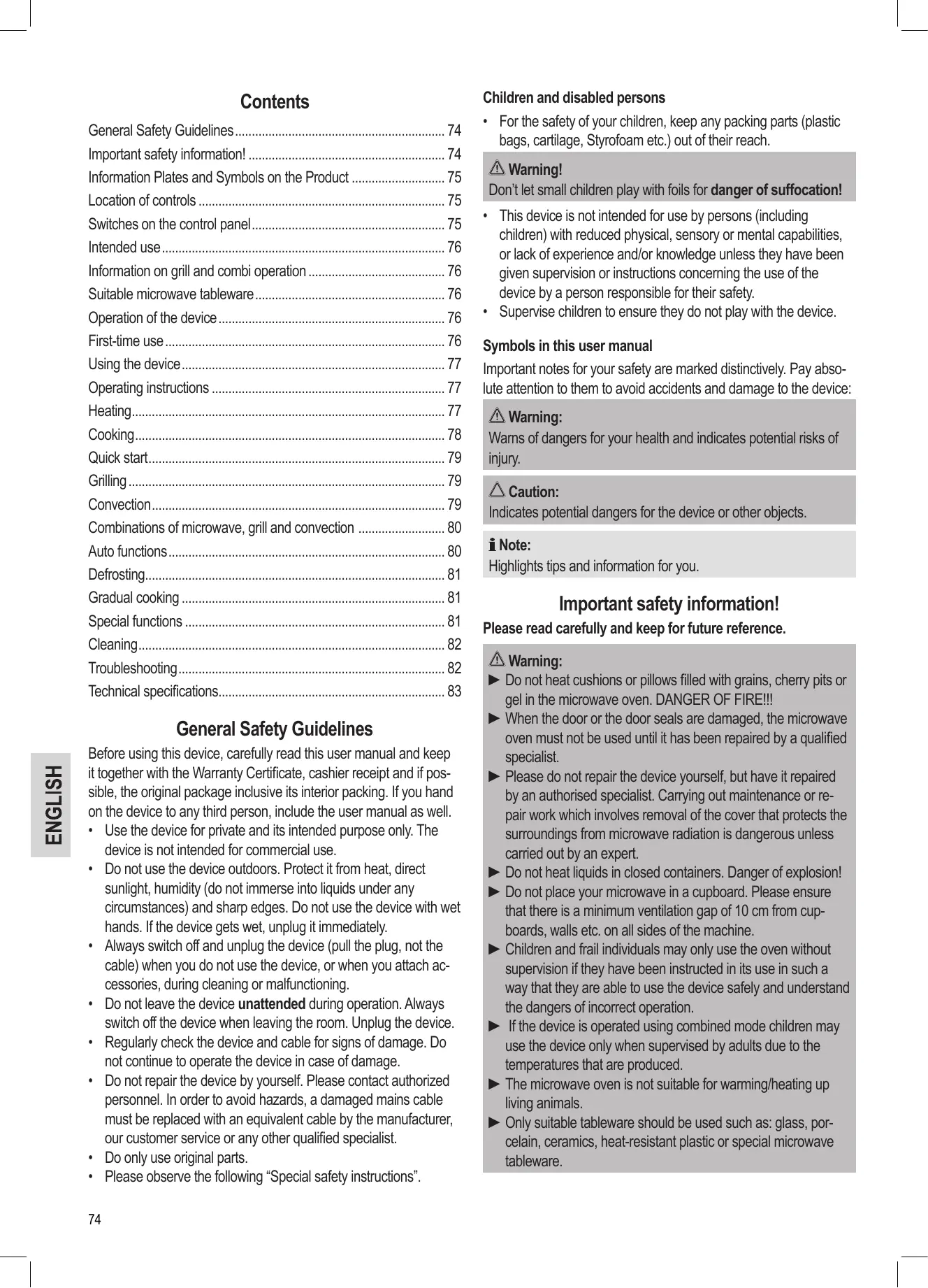 - Suitable microwave tableware p. 76