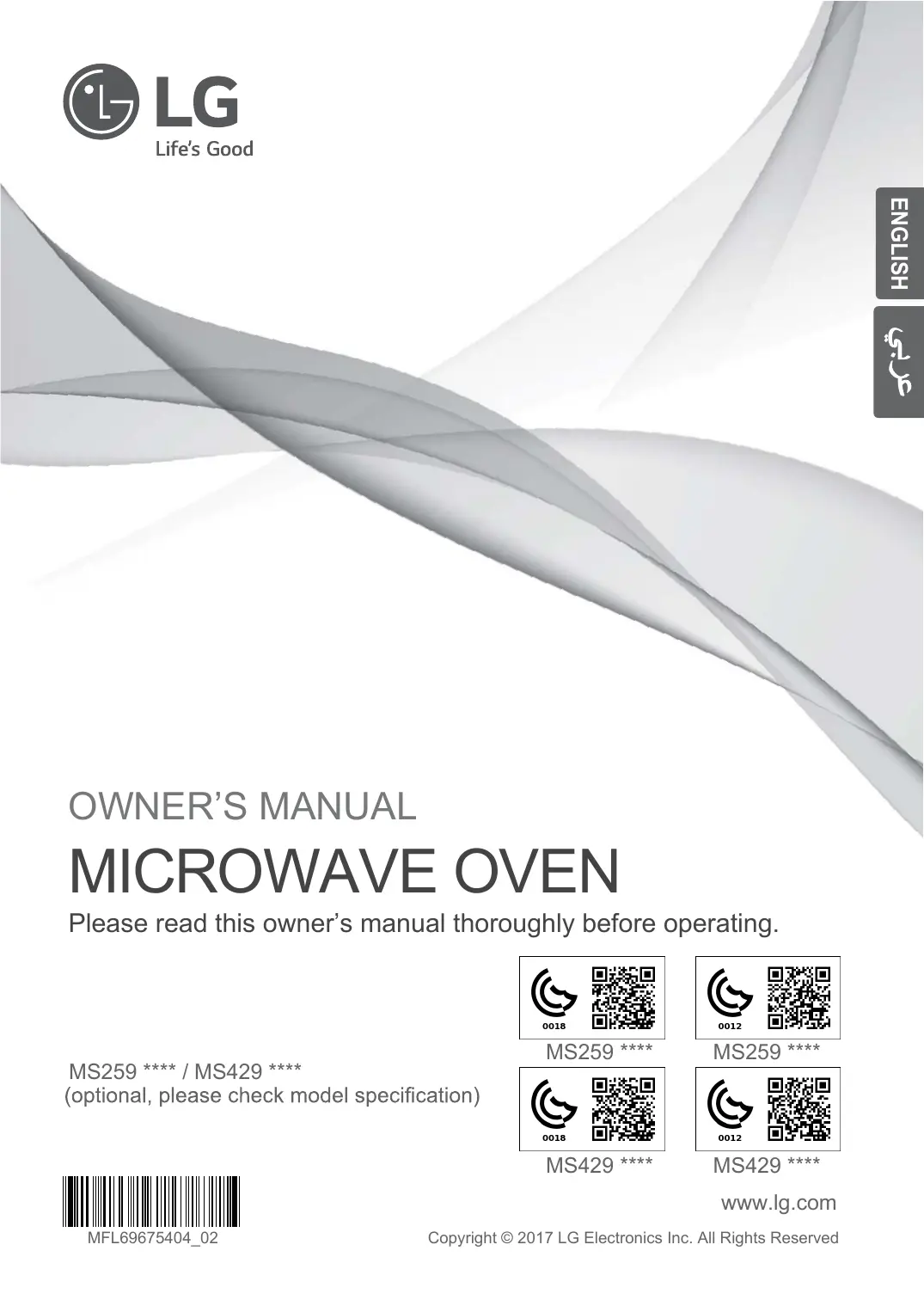 * In 1200 W and 1000 W, output power will gradually be reduced to avoid overheating. Microwave Frequency : 2450 MHz +/- 50 MHz (Group 2 / Class B) ** Group 2 equipment: group 2 contains all ISM RF equipment in which radio-frequency energy in the frequency range 9 kHz to 400 GHz is intentionally generated and used or only used, in the form of electromagnetic radiation, inductive and /or capacitive coupling, for the treatment of material or inspection/analysis purposes. Class B equipment is equipment suitable for use in domestic establishments and in establishments directly connected to a low voltage power supply network which supplies buildings used for domestic purposes. You can download a owner's manual at http://www.lg.com