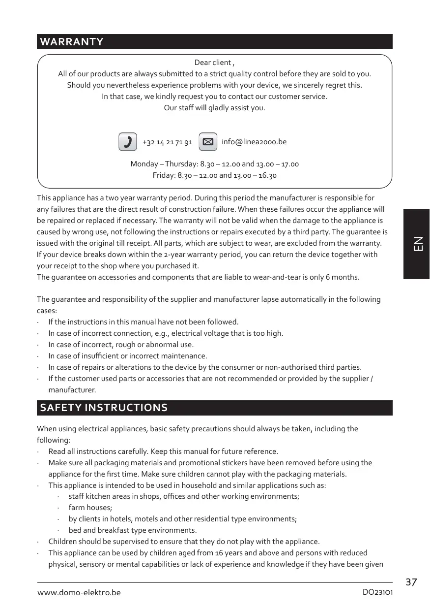 - This appliance can be used by children aged from 16 years and above and persons with reduced physical, sensory or mental capabilities or lack of experience and knowledge if they have been given www.domo-elektro.be DO23101