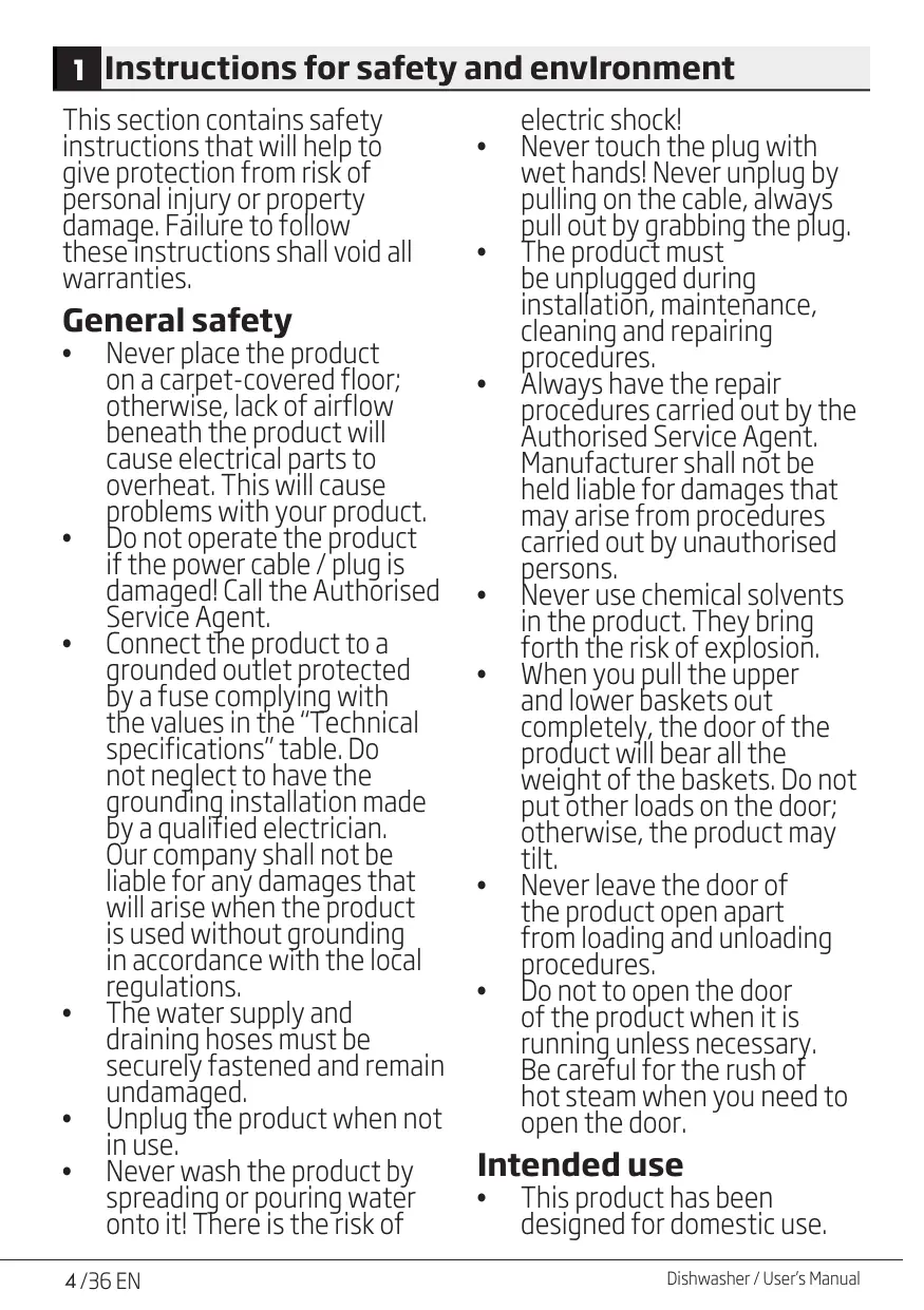 This product has been designed for domestic use. 4/36EN Dishwasher / User's Manual