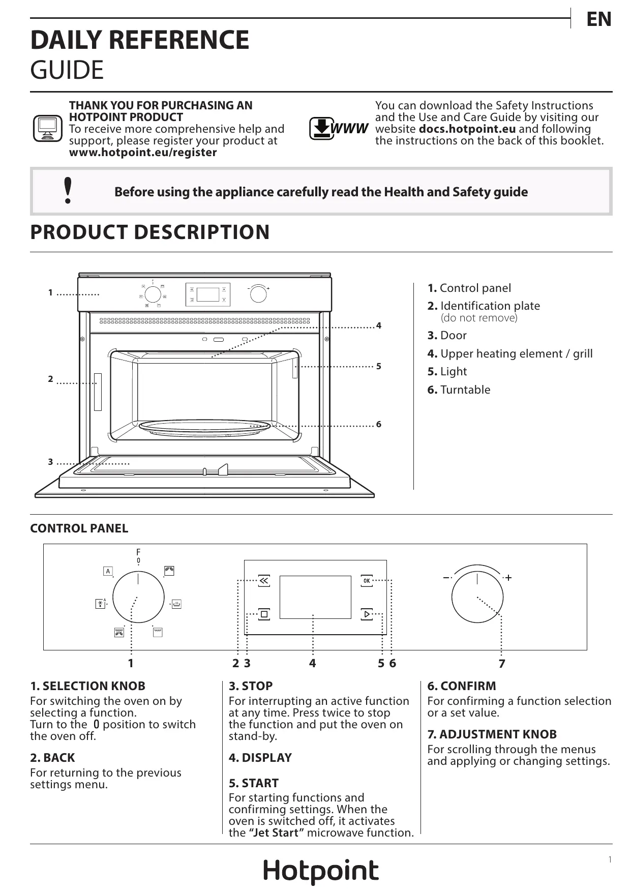 EN DAILY REFERENCE GUIDE THANK YOU FOR PURCHASING AN HOTPOINT PRODUCT To receive more comprehensive help and support, please register your product at www.hotpoint.eu/register