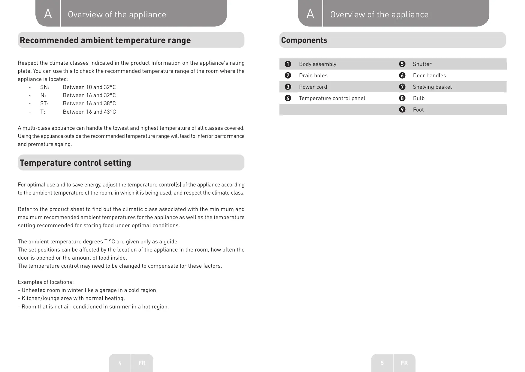 For optimal use and to save energy, adjust the temperature control(s) of the appliance according to the ambient temperature of the room, in which it is being used, and respect the climate class.