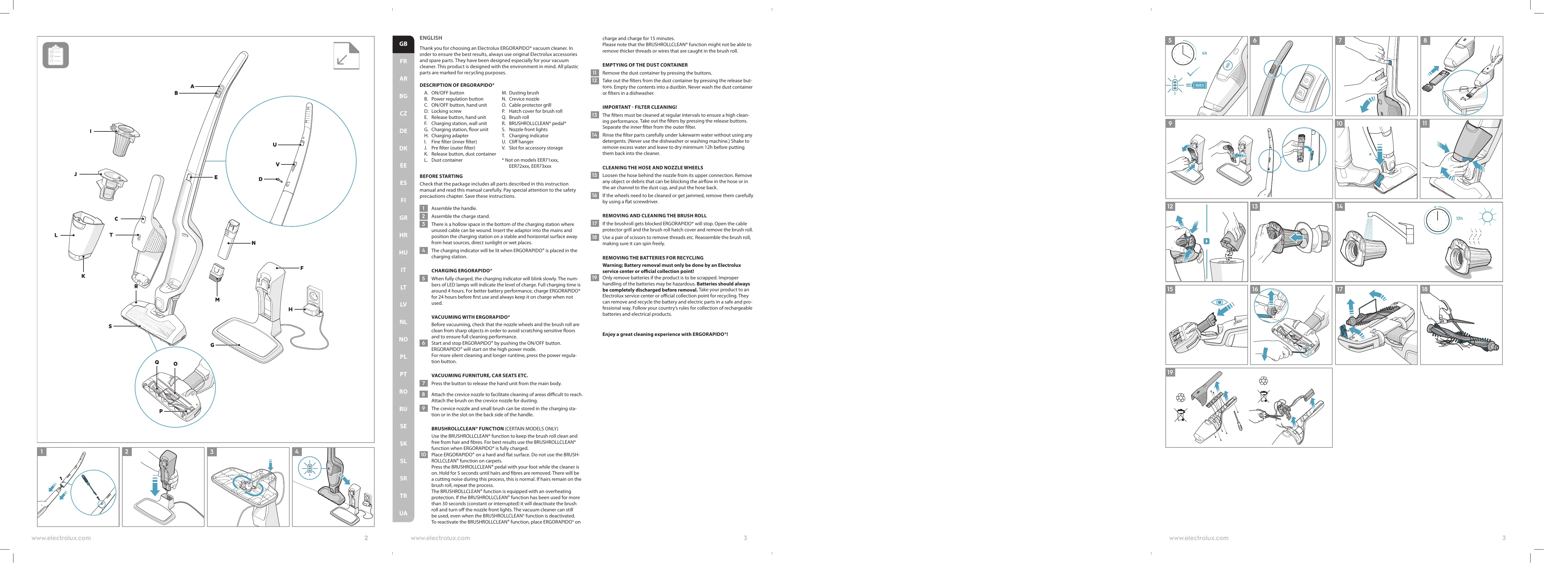 ENGLISH Thank you for choosing an Electrolux ERGORAPIDO® vacuum cleaner. In order to ensure the best results, always use original Electrolux accessories and spare parts. They have been designed especially for your vacuum cleaner. This product is designed with the environment in mind. All plastic parts are marked for recycling purposes.