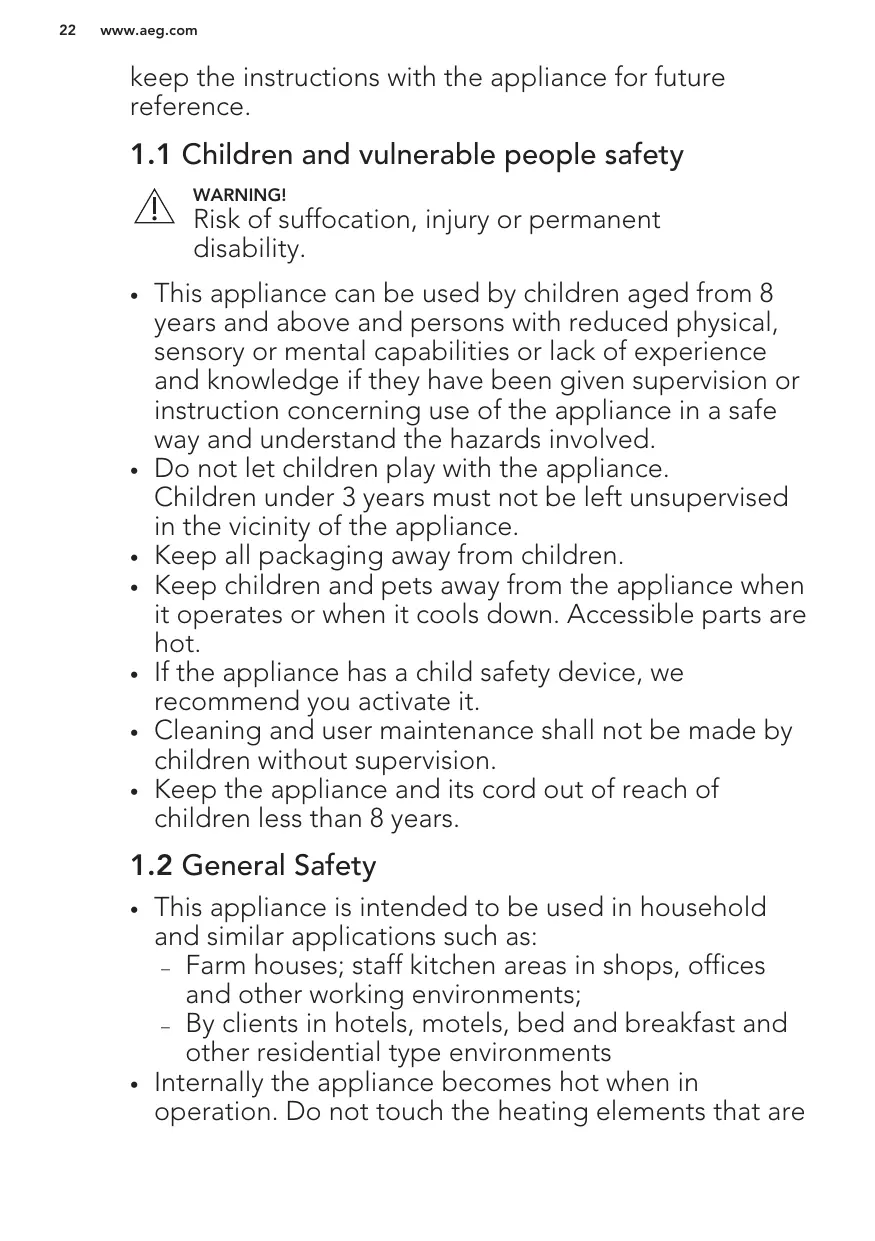 Register your product for better service: www.registeraeg.com Buy Accessories, Consumables and Original spare parts for your appliance: www.aeg.com/shop
