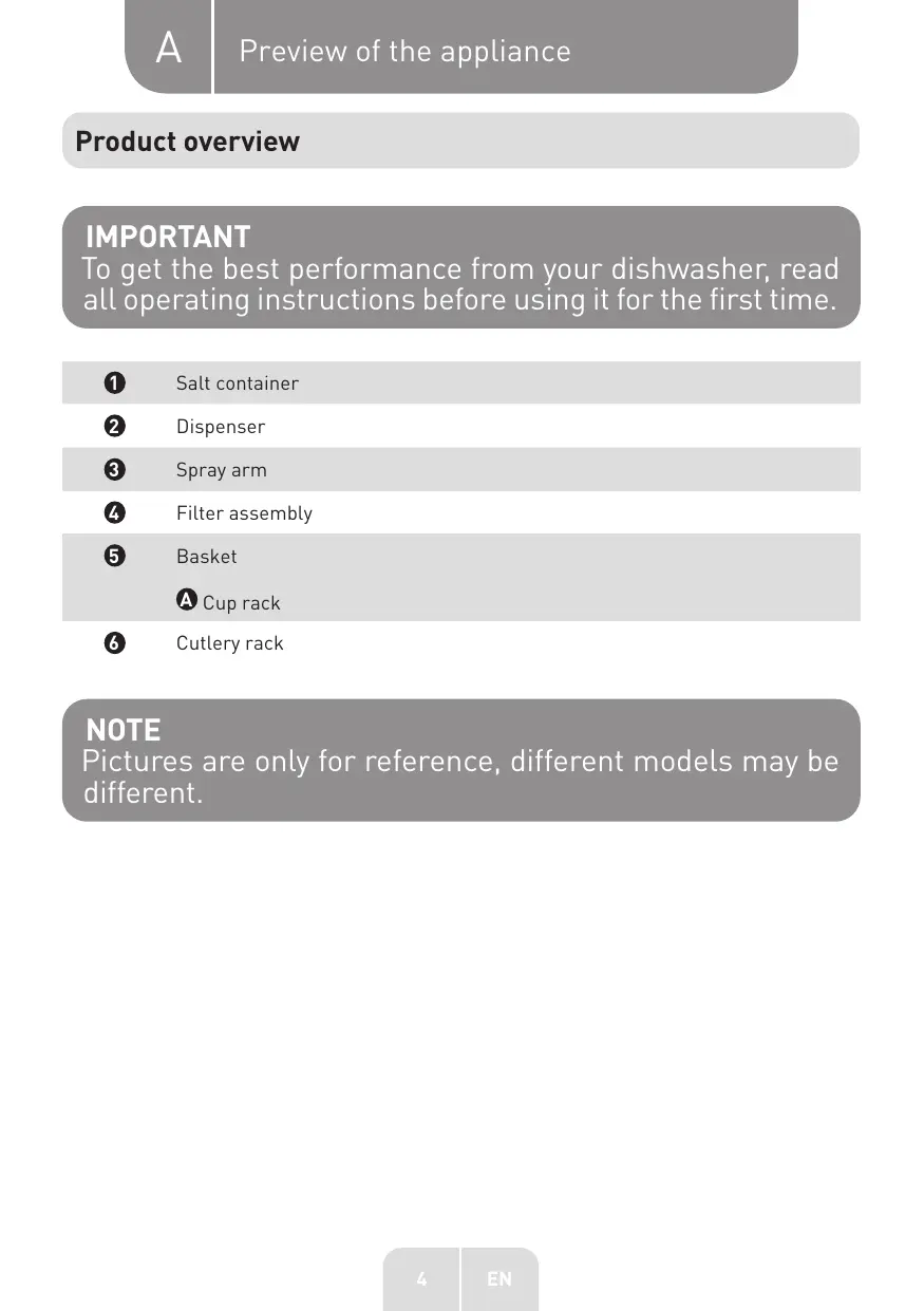 IMPORTANT To get the best performance from your dishwasher, read all operating instructions before using it for the first time.