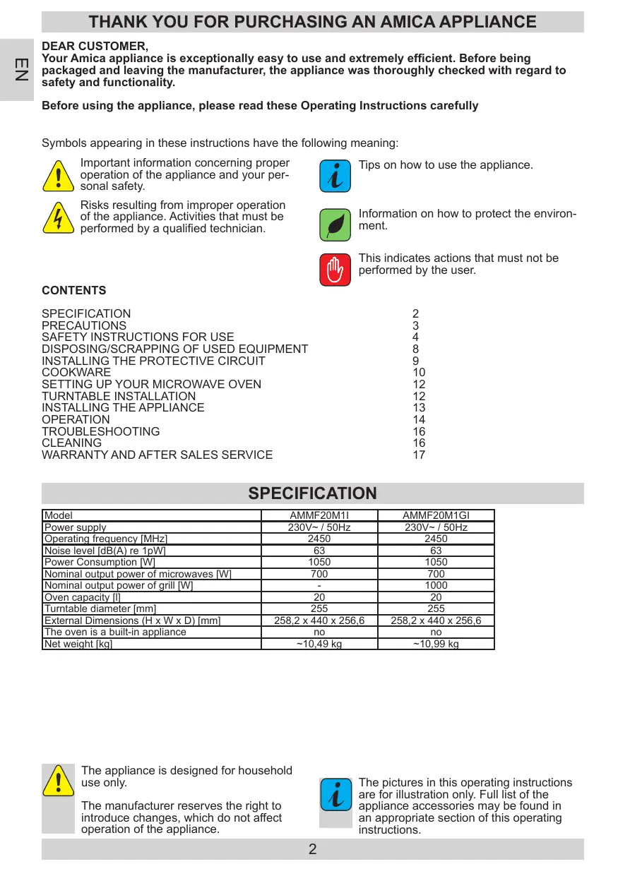 AMMF20M1GI - Microwave oven AMICA - Free user manual and instructions