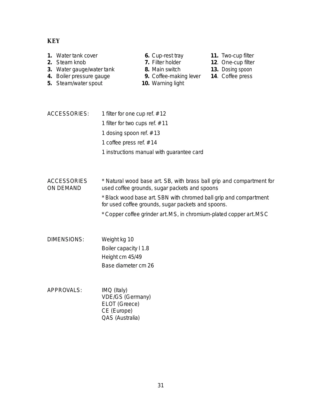 MICRO CASA S1CO - Coffee machine ELEKTRA - Free user manual and instructions