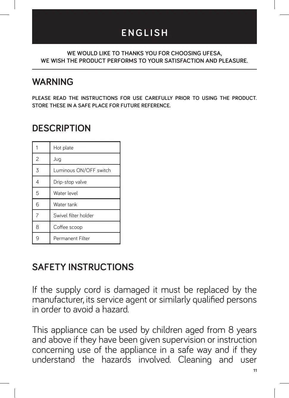 ENGLISH WE WOULD LIKE TO THANKS YOU FOR CHOOSING UFESA,