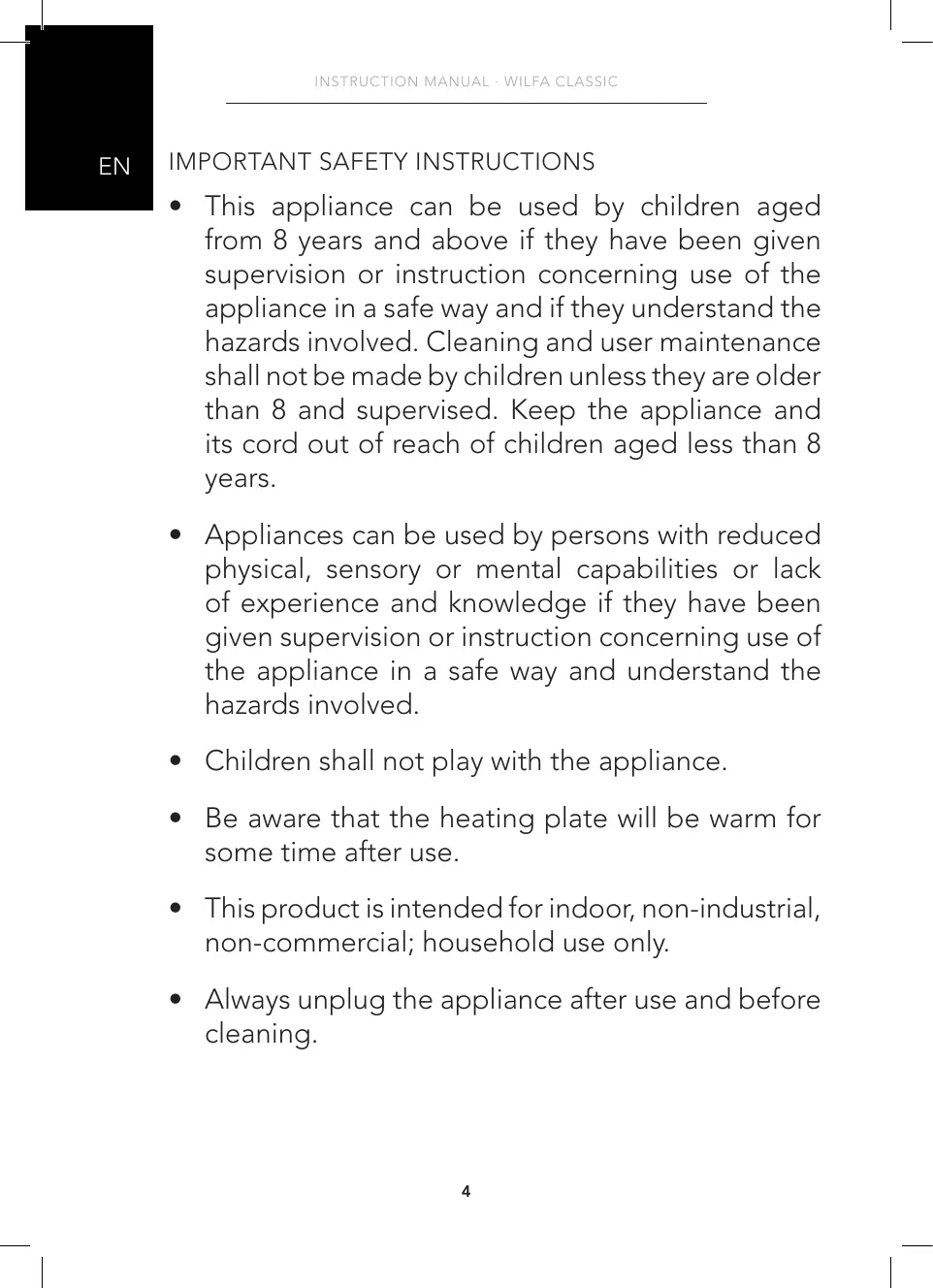 INSTRUCTION MANUAL · WILFA CLASSIC