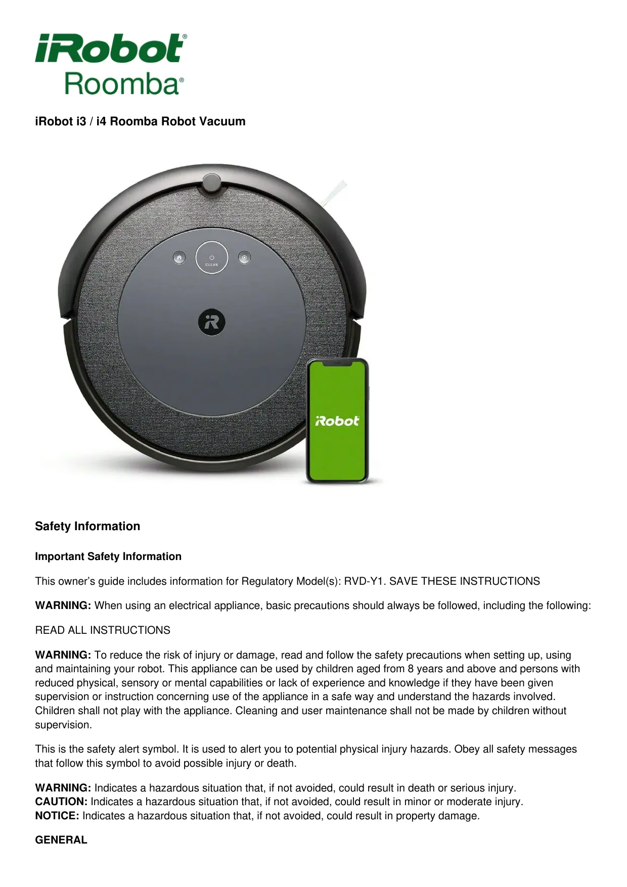 Download the instructions for your Robot vacuum in PDF format for free! Find your manual ROOMBA I3154 - IROBOT and take your electronic device back in hand. On this page are published all the documents necessary for the use of your device. ROOMBA I3154 by IROBOT.