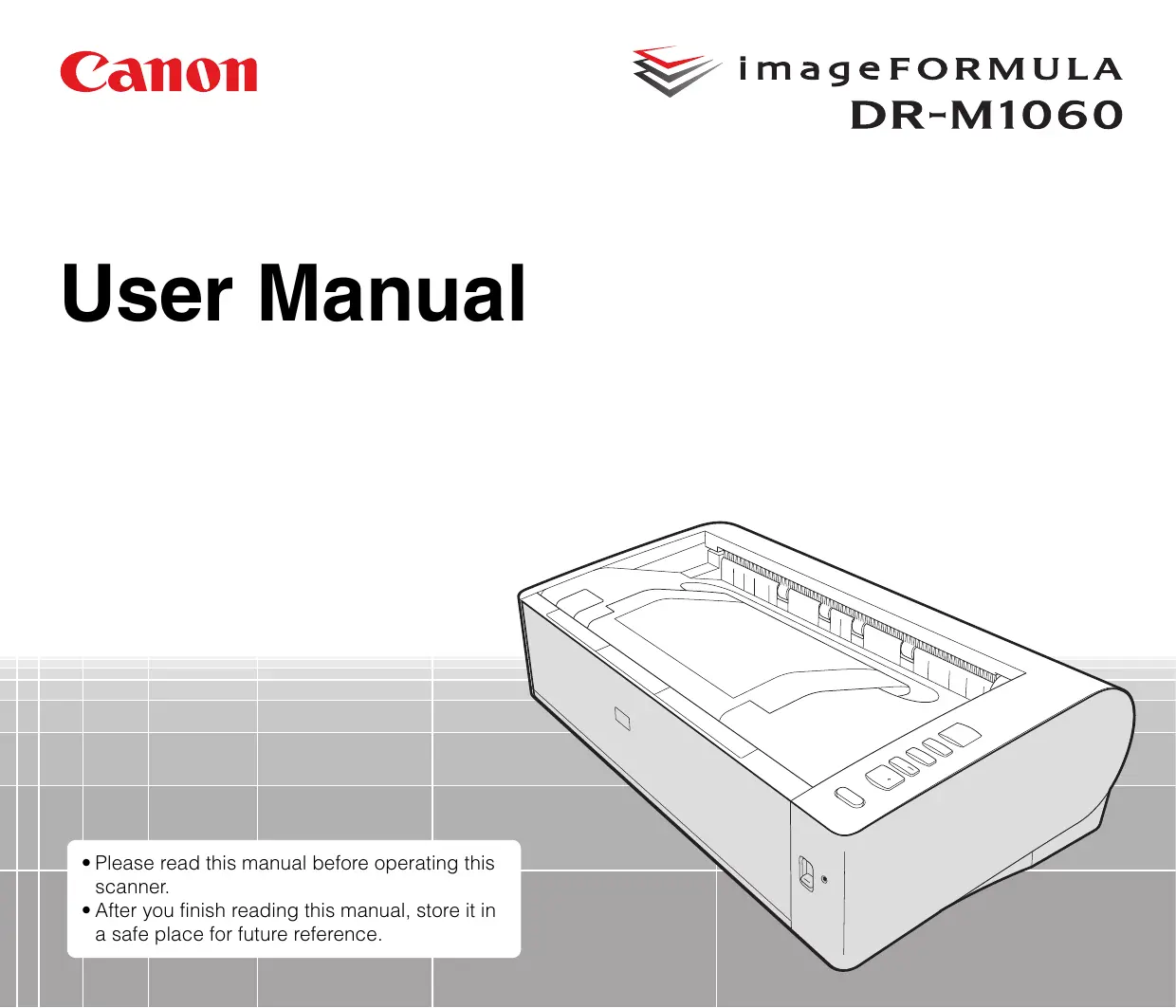 Download the instructions for your To scan in PDF format for free! Find your manual IMAGEFORMULA DR-M1060 - CANON and take your electronic device back in hand. On this page are published all the documents necessary for the use of your device. IMAGEFORMULA DR-M1060 by CANON.