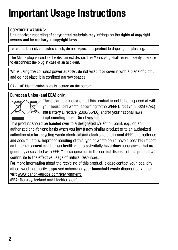 generally associated with EEE. Your cooperation in the correct disposal of this product will