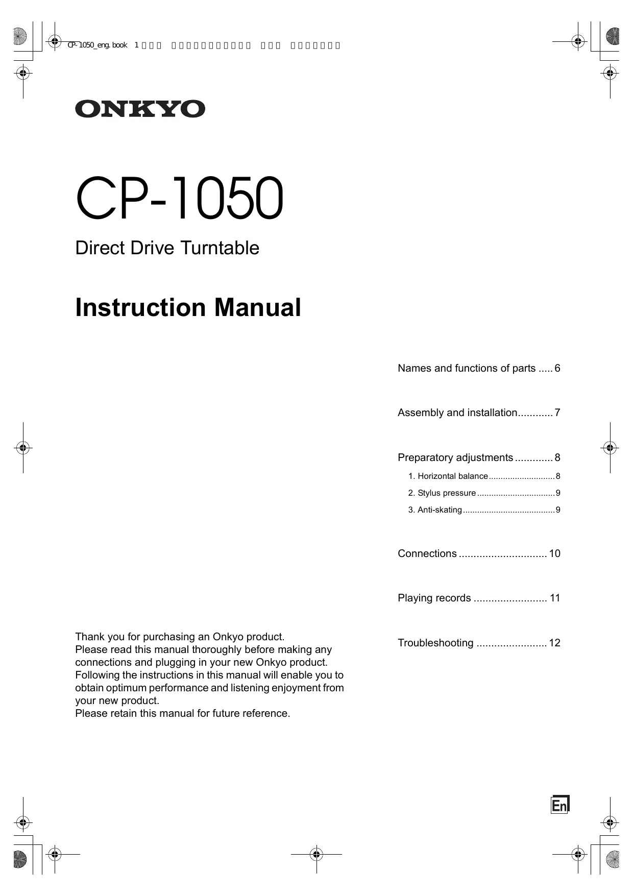Download the instructions for your Turntable in PDF format for free! Find your manual CP-1050 - ONKYO and take your electronic device back in hand. On this page are published all the documents necessary for the use of your device. CP-1050 by ONKYO.
