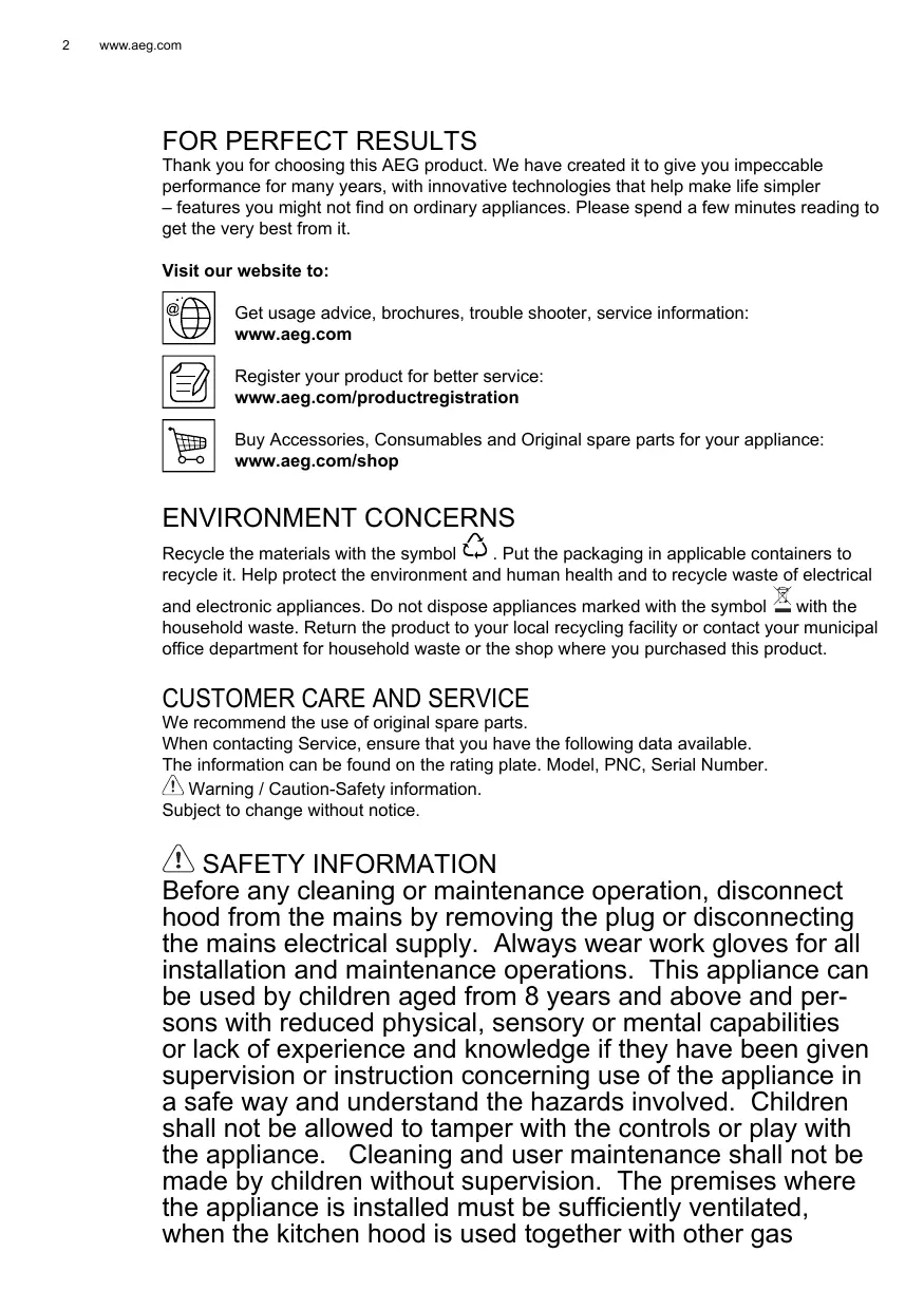– features you might not find on ordinary appliances. Please spend a few minutes reading to get the very best from it. Visit our website to: Get usage advice, brochures, trouble shooter, service information: www.aeg.com Register your product for better service: www.aeg.com/productregistration Buy Accessories, Consumables and Original spare parts for your appliance: www.aeg.com/shop