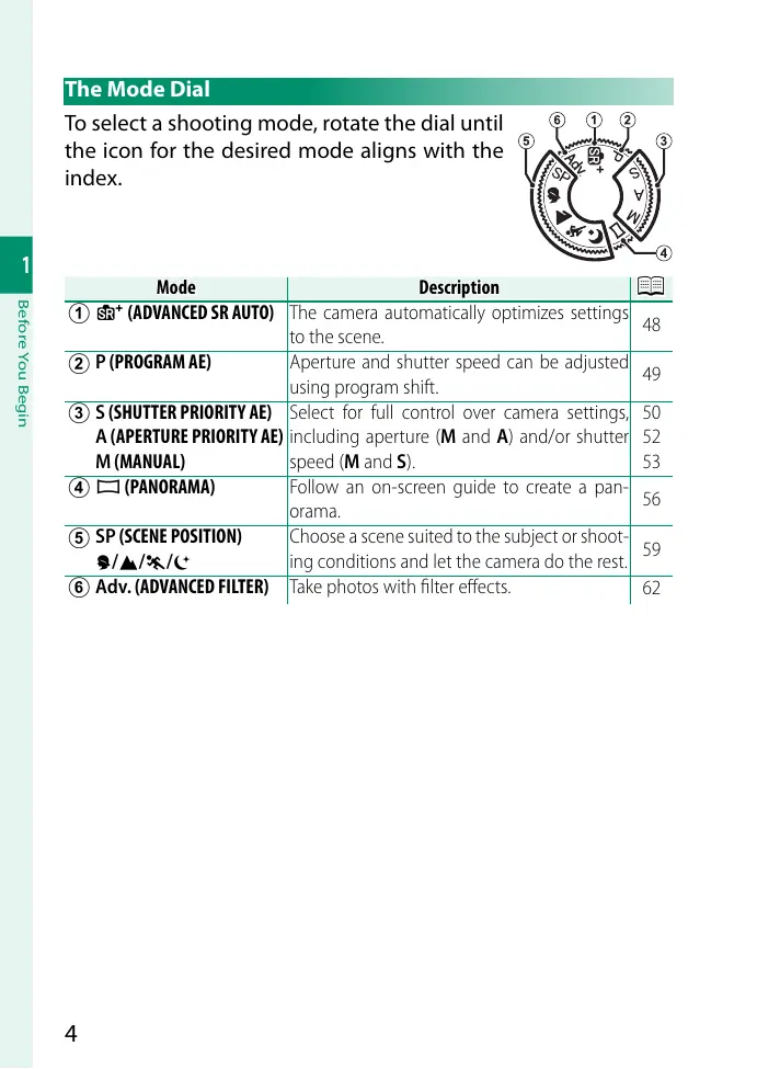 The Mode Dial To select a shooting mode, rotate the dial until the icon for the desired mode aligns with the index.