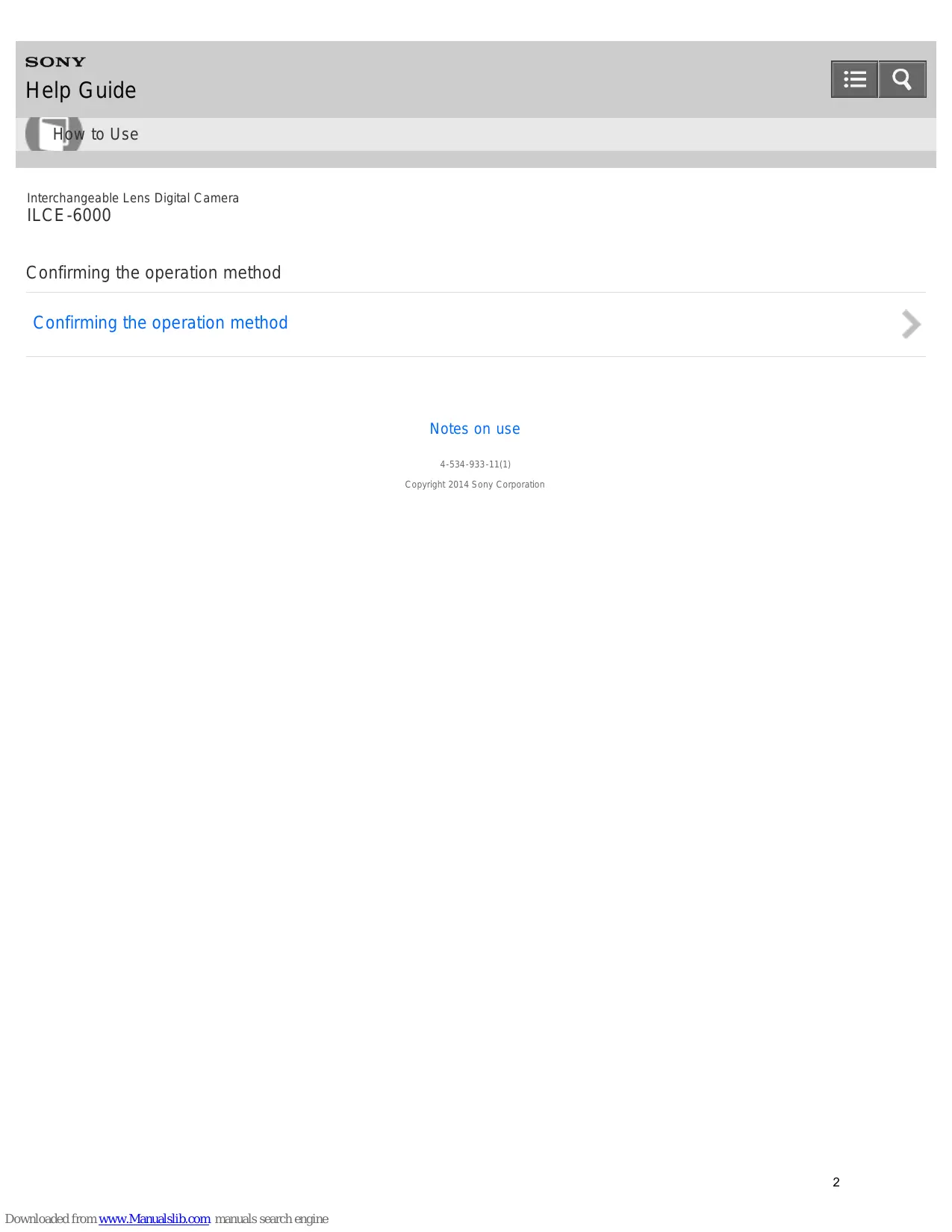 ILCE-6000 Confirming the operation method Confirming the operation method