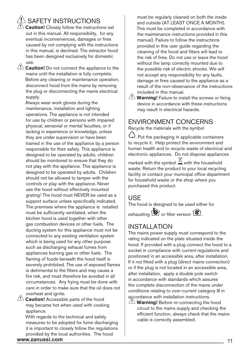 Download the instructions for your Hotte de cuisine in PDF format for free! Find your manual ZHC92662XA - ZANUSSI and take your electronic device back in hand. On this page are published all the documents necessary for the use of your device. ZHC92662XA by ZANUSSI.