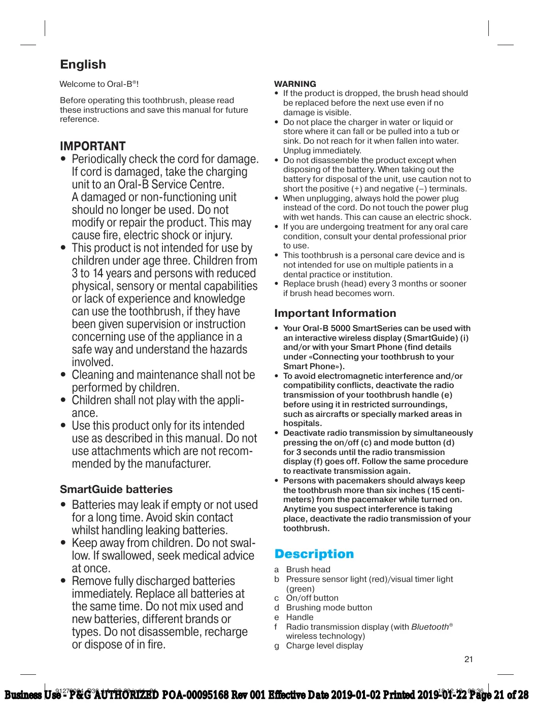 Business Use - P&G AUTHORIZED POA-00095168 Rev 001 Effective Date 2019-01-02 Printed 2019-01-22 Page 21 of 28